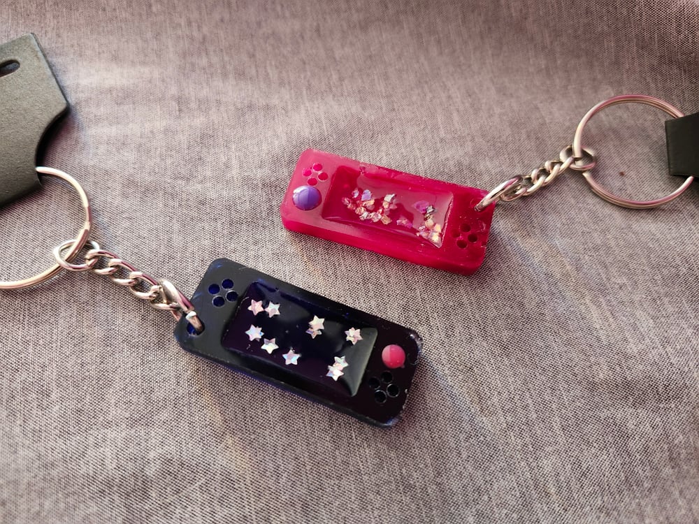 Cute, colorful keychains inspired by popular gaming consoles, made with resin!