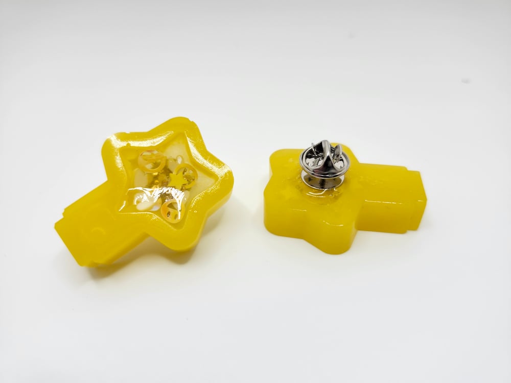 Colorful, quirky little potion pins! Made with resin, metal clasp pin backs.